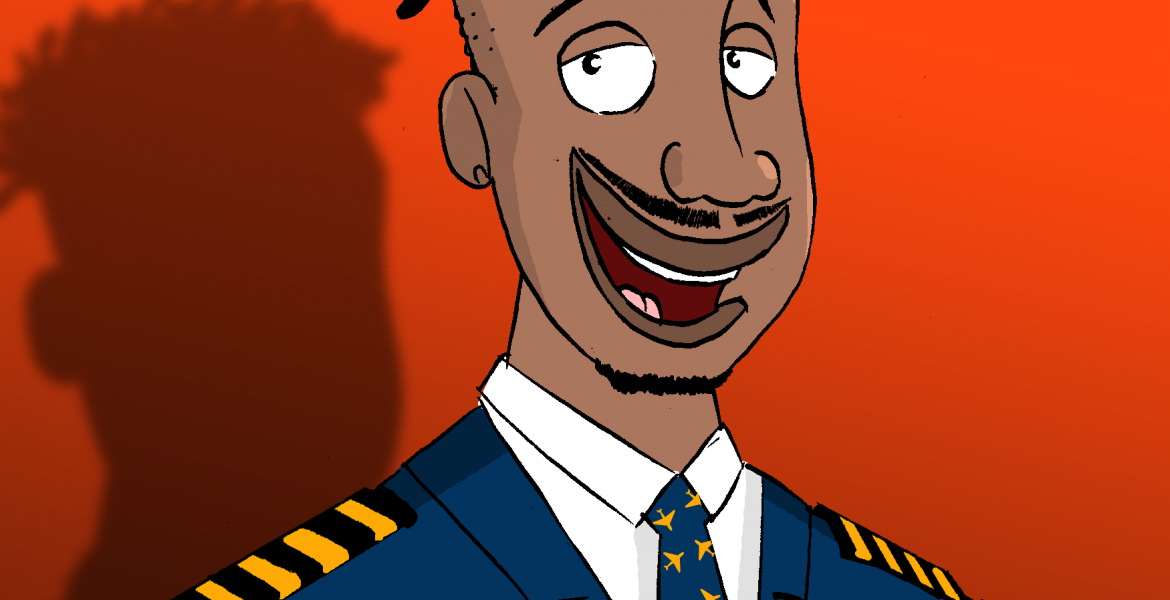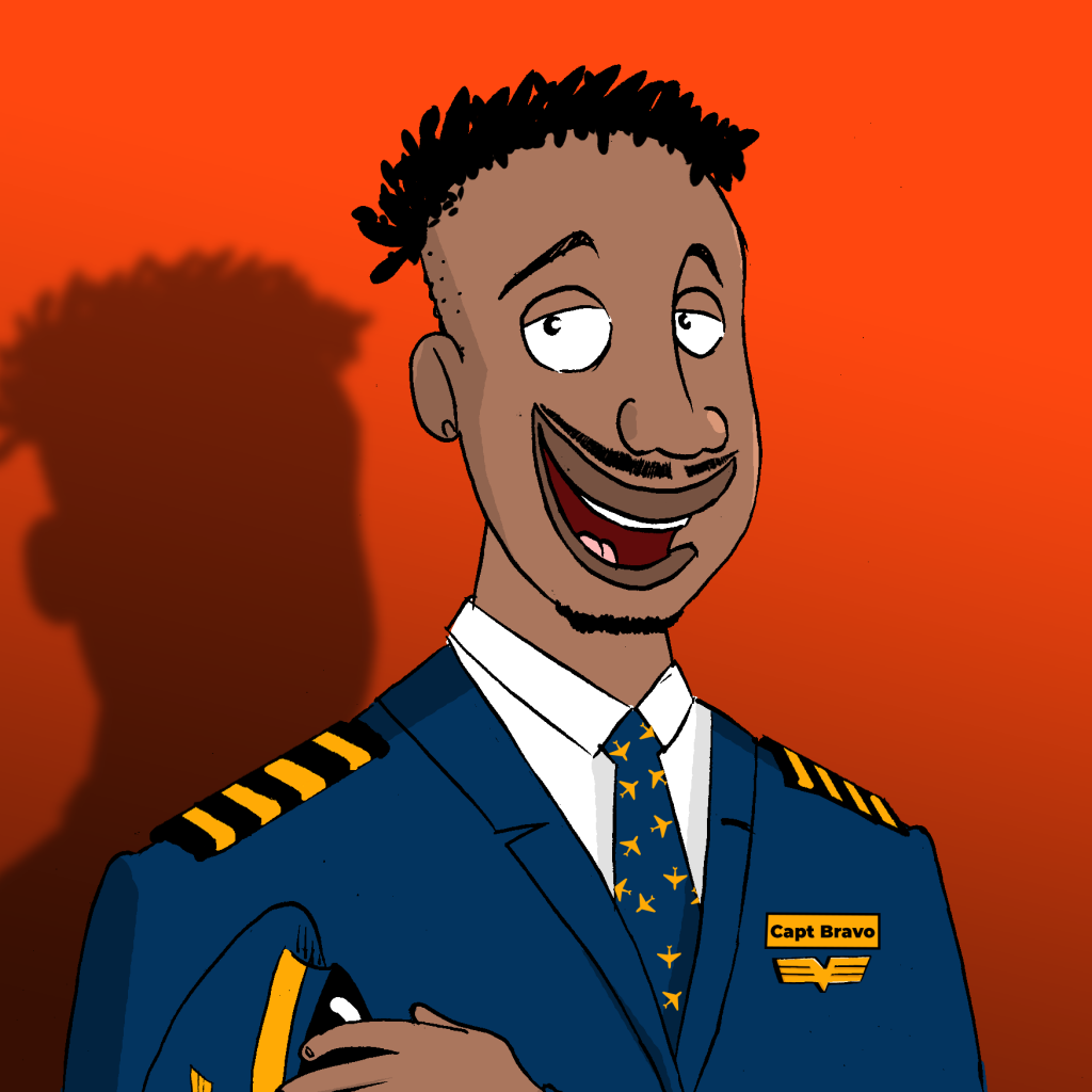 Captain Bravo is a larger-than-life Boeing pilot from Africa. He recently won an internationally recognized award for heroism, after successfully ditching off the East African coastline and saving all his crew and passengers. Bravo is the chief of his local tribe, a community man with a big heart.
