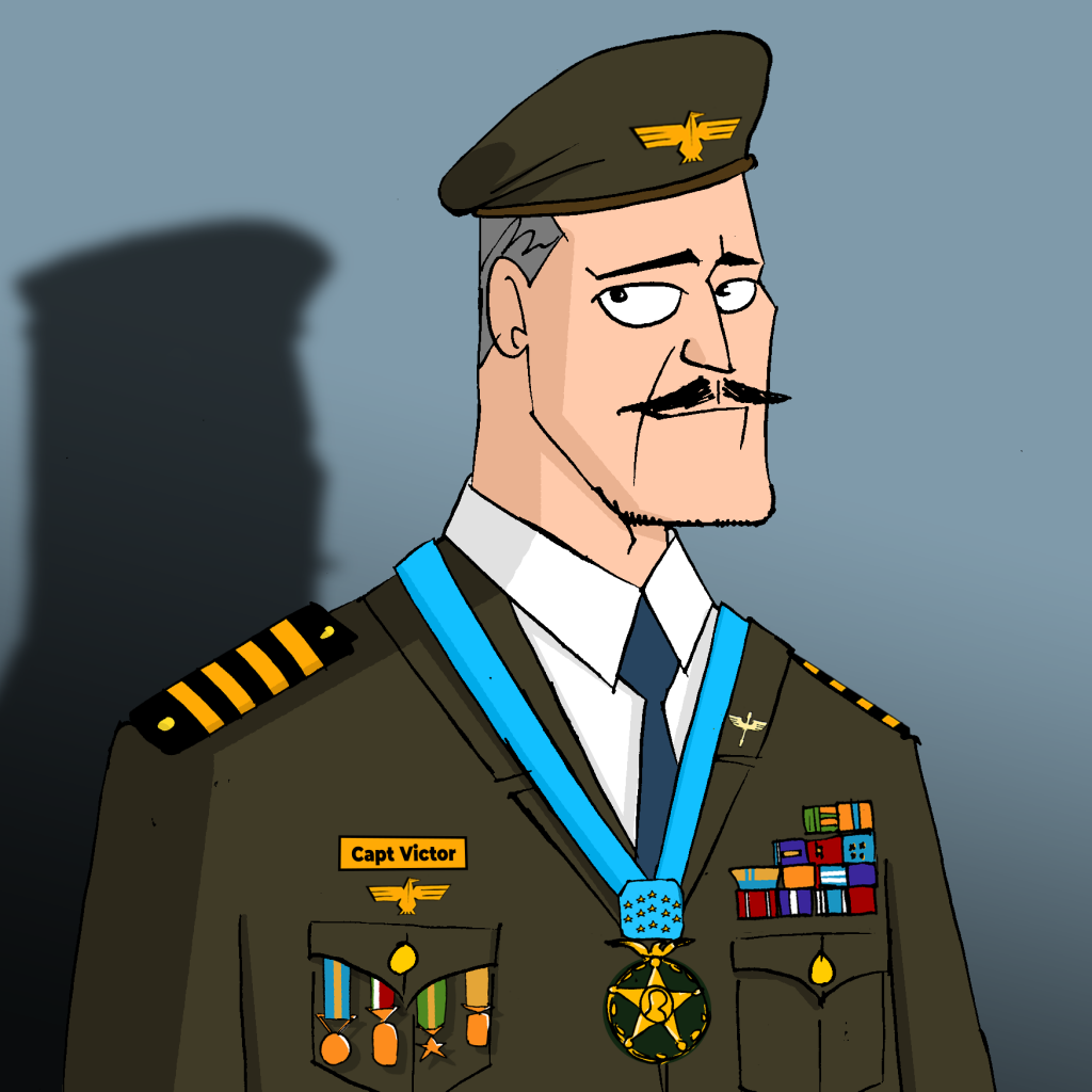 Captain Victor is a Vietnam war hero renowned for his Valor. This highly decorated individual served his country for 40 years, and held the rank of Brigadier General for at least 10. He is the holder of many awards, but the most significant being the Medal of Honor, awarded for Conspicuous gallantry and intrepidity at the risk of life above and beyond the call of duty. He is now retired and living peacefully on his cattle ranch where he still flies his private Boeing Stearman and takes great interest in astronomy.